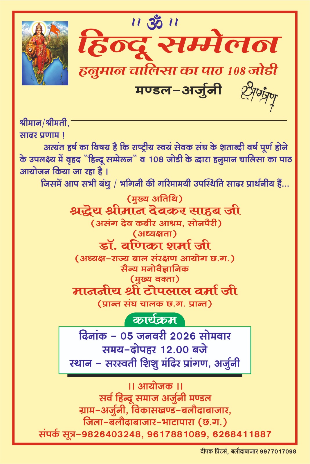 Home/अर्जुनी में भव्य हिंदू सम्मेलन व 108 जोड़ी हनुमान चालीसा पाठ का आयोजन।/db36d640035c435f9166d8d8f03285ef db36d640035c435f9166d8d8f03285ef