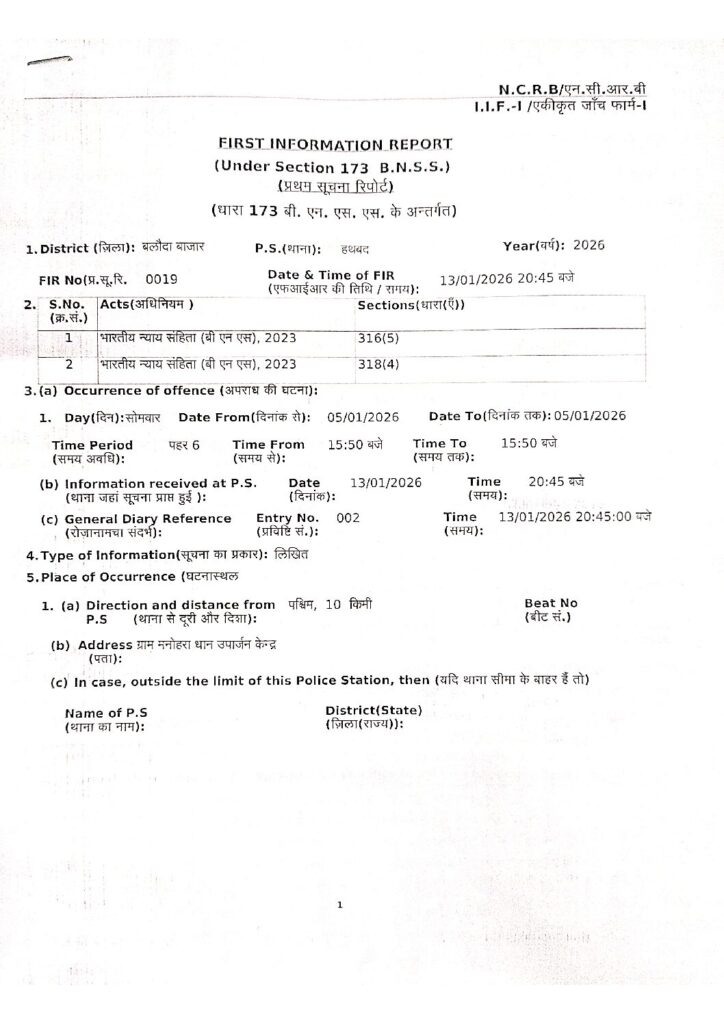 Home/भौतिक सत्यापन में 124 क्विंटल धान कम मिला, धान खरीदी प्रभारी पर एफआईआर दर्ज/DocScanner 13-Jan-2026 9-19 pm DocScanner 13-Jan-2026 9-19 pm