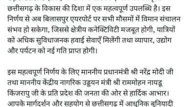 रायपुर 6 फरवरी 2026/भारत सरकार के नागर विमानन महानिदेशालय (DGCA) द्वारा बिलासपुर एयरपोर्ट को 3C-VFR से 3C-All Weather Operations (IFR)…