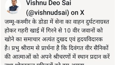 जम्मू-कश्मीर के डोडा में सेना वाहन दुर्घटना पर मुख्यमंत्री विष्णु देव साय ने जताया गहरा शोक