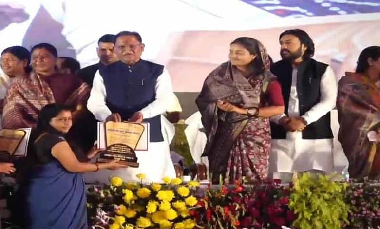 अंतर्राष्ट्रीय महिला दिवस के अवसर पर मुख्यमंत्री श्री विष्णुदेव साय ने रायपुर में आयोजित कार्यक्रम के दौरान रायगढ़ जिले के ट्रांसपोर्ट नगर किरोड़ीमल आंगनबाड़ी केंद्र की कार्यकर्ता श्रीमती राम कुमारी चौहान को उत्कृष्ट आंगनबाड़ी कार्यकर्ता पुरस्कार से सम्मानित किया।