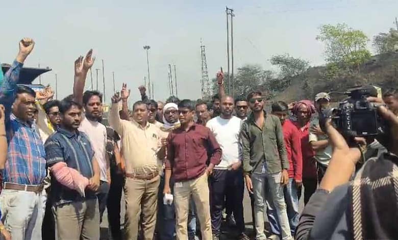 कुसमुंडा खदान में 25 फीट की ऊंचाई से गिरकर मजदूर की मौत, परिजनों ने मजदूरों के साथ किया प्रदर्शन
