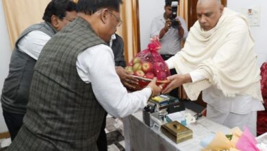 मुख्यमंत्री साय ने कथावाचक पंडित प्रदीप मिश्रा जी का पुष्पमाला पहनाकर एवं मधेश्वर महादेव का छायाचित्र भेंटकर अभिनंदन किया, साथ ही प्रदेशवासियों के सुख-समृद्धि की कामना करते हुए उनका आशीर्वाद प्राप्त किया।