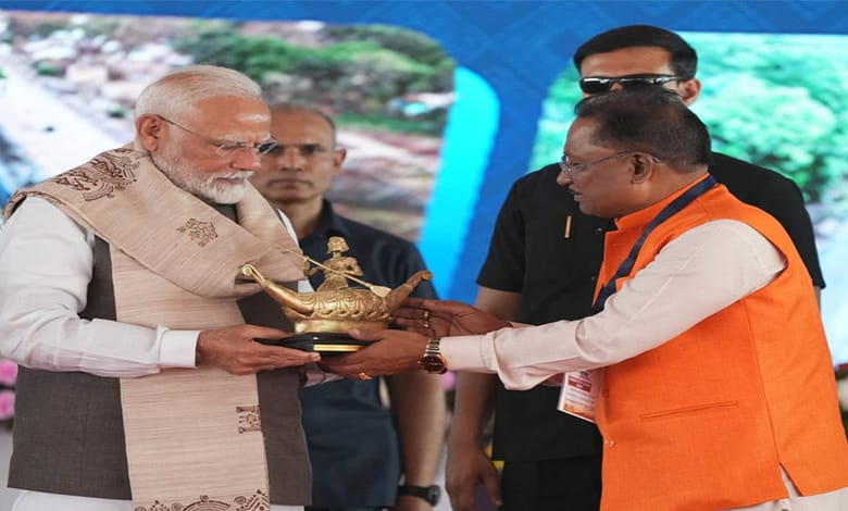 मुख्यमंत्री विष्णुदेव साय ने बिलासपुर जिले के ग्राम मोहभट्टा में आयोजित आमसभा एवं विकास कार्यों के लोकार्पण शिलान्यास समारोह में प्रधानमंत्री नरेंद्र मोदी को आज एक विशेष मोमेंटो भेंट किया, जो छत्तीसगढ़ की वीरांगना बिलासा देवी केवट की स्मृति में तैयार किया गया है। यह मोमेंटो न केवल छत्तीसगढ़ की सांस्कृतिक विरासत का प्रतीक है, बल्कि नारी शक्ति, आत्मनिर्भरता और नेतृत्व क्षमता की जीवंत अभिव्यक्ति भी है।
