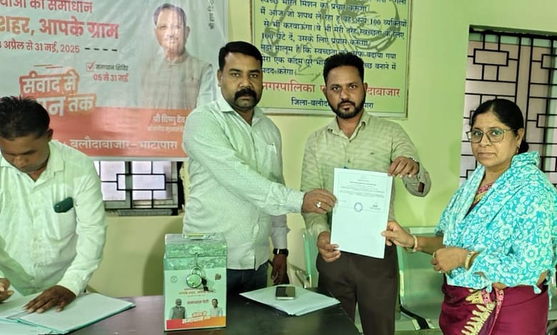 नगर पालिका बलौदाबाजार के वार्ड क्रमांक 17 निवासी आवेदक हेमलता वर्मा बुधवार को नगर पालिका कार्यालय के आवेदन प्राप्ति स्थल में अपना आवेदन देने पहुंची। आवेदन में अपने बेटे का जन्म प्रमाण पत्र के लिए अनुपलब्धता प्रमाण की जरुरत थीं। मुख्य नगर पालिका अधिकारी खिरोद्र भोई ने संवेदनशीलता क़ा परिचय देते हुए तत्काल अनुपलब्धता प्रमाण पत्र बनाकर उन्हें सौंप दिया गया।