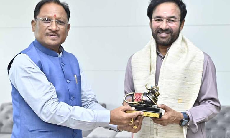 मुख्यमंत्री विष्णु देव साय से आज मंत्रालय महानदी भवन में केंद्रीय कोयला एवं खान मंत्री जी. किशन रेड्डी ने सौजन्य मुलाकात की। मुख्यमंत्री साय ने केंद्रीय मंत्री रेड्डी का पुष्पगुच्छ, शॉल एवं बेल मेटल से बने प्रतीक चिन्ह नंदी भेंट कर अभिनंदन किया।