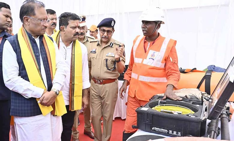 कार्यक्रम के दौरान राज्य आपदा मोचन बल और अग्निशमन राहत दल द्वारा आगजनी की घटना पर आधारित आपातकालीन सेवा का प्रदर्शन (डेमो) भी किया गया। मुख्यमंत्री श्री साय ने पूरे रेस्क्यू ऑपरेशन को गहरी रुचि और गंभीरता से देखा और जवानों की तत्परता व सजगता की भूरी-भूरी प्रशंसा की। साथ ही उन्होंने अग्निशमन सेवाओं में उपयोग होने वाले अत्याधुनिक उपकरणों की प्रदर्शनी का अवलोकन भी किया। विभागीय अधिकारियों ने उन्हें लुकास जैक, ग्लास ब्रेकर, एयर लिफ्टिंग बैग, पेलिकन टावर लाइट, डायमंड टिप, चेन सॉ, फायर जैल ब्लैकेट, फायर सूट और अंडर वॉटर कैमरा जैसे उपकरणों की कार्यप्रणाली और उपयोगिता की जानकारी दी।