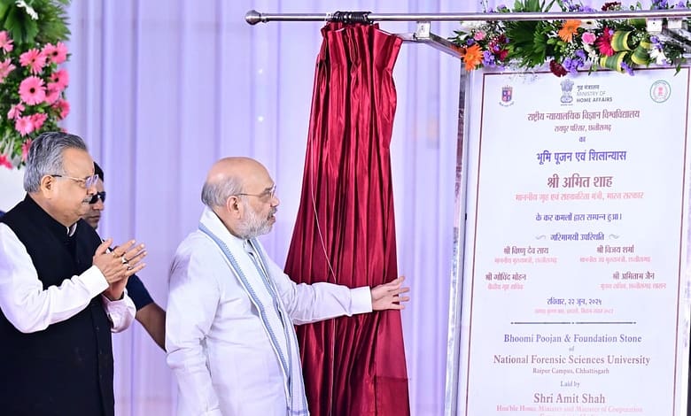 Chhattisgarh News : केन्द्रीय गृह मंत्री अमित शाह ने किया NFSU और NFSL का भूमिपूजन, 40 एकड़ जमीन पर बनेगा सर्वसुविधायुक्त आधुनिक भवन