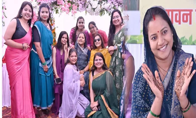 मंत्री ने लगवाई मेहँदी, सावन के झूले का भी लिया आनंद