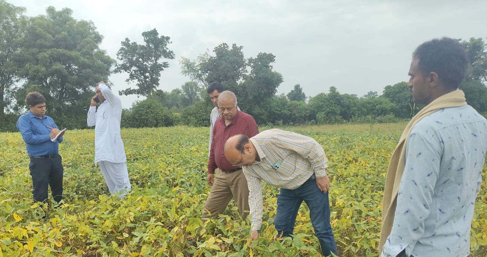 जलभराव एवं विभिन्न कीट व्याधि से ग्रसित सोयाबीन फसलों का किया निरीक्षण
