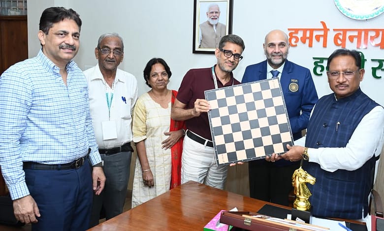रायपुर: मुख्यमंत्री श्री विष्णु देव साय से विगत दिवस राजधानी रायपुर स्थित मुख्यमंत्री निवास में भारत के अंतर्राष्ट्रीय शतरंज खिलाड़ी एवं ग्रैंडमास्टर प्रवीण महादेव थिप्से ने सौजन्य भेंट की। मुख्यमंत्री श्री साय ने श्री थिप्से की खेल प्रतिभा और उपलब्धियों की सराहना करते हुए उनकी प्रशंसा की। इस अवसर पर छत्तीसगढ़ ओलंपिक संघ के महासचिव श्री विक्रम सिसोदिया सहित संघ के अन्य पदाधिकारी उपस्थित थे।