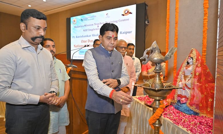 रायपुर: उच्च शिक्षा मंत्री श्री टंक राम वर्मा ने नई शिक्षा नीति 2020 पर आजपं. रविशंकर शुक्ल विश्वविद्यालय, रायपुर में मालवीया मिशन टीचर ट्रेनिंग सेंटर एवं एनईपी इम्प्लीमेंटेशन सेल के संयुक्त तत्वावधान में राष्ट्रीय शिक्षा नीति-2020 पर एक दिवसीय कार्यशाला का आयोजन किया गया। विश्वविद्यालय सभागार में आयोजित इस कार्यशाला में उच्च शिक्षा मंत्री श्री टंक राम वर्मा ने कहा कि राष्ट्रीय शिक्षा नीति-2020 देश की शिक्षा व्यवस्था को नई दिशा और दृष्टि देने वाली है।
