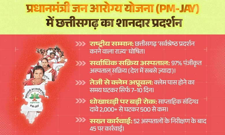 छत्तीसगढ़ को प्रधानमंत्री जन आरोग्य योजना में मिला राष्ट्रीय सम्मान,‘सर्वश्रेष्ठ प्रदर्शन करने वाला राज्य’ घोषित