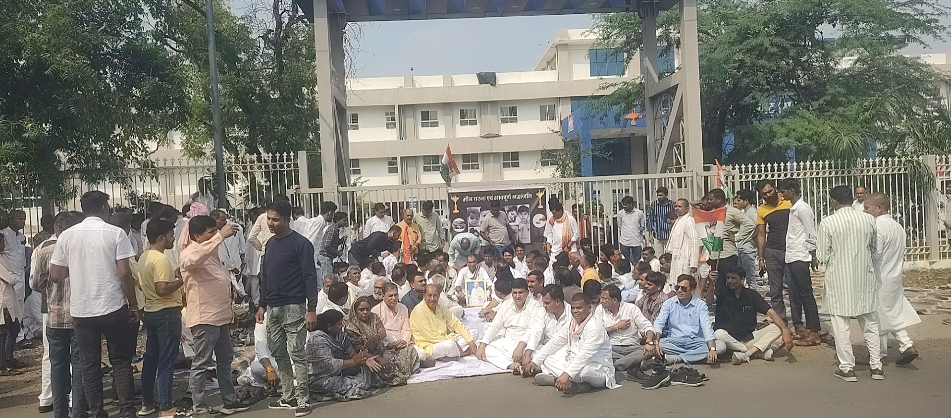 अस्पताल परिसर में धरने पर बैठे कांग्रेस पदाधिकारी एसडीएम ने कहा यहां की परमिशन नहीं अस्पताल के बाहर बैठे