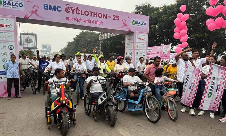 विश्व स्तन कैंसर जागरूकता माह के दौरान बालको मेडिकल सेंटर ने आज रायपुर के मरीन ड्राइव में ‘बीएमसी साइक्लोथॉन–25’ का आयोजन किया. इस कार्यक्रम का उद्देश्य स्वास्थ्य, फिटनेस और कैंसर के प्रति जागरूकता को एक साथ जोड़कर समाज में “शर्म छोड़ो – गांठों पर बोलो” का संदेश फैलाना है.