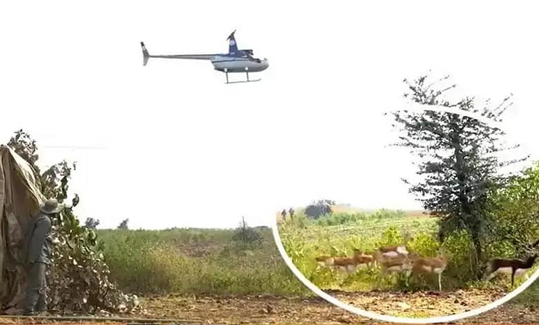 हेलीकॉप्टर और बोमा से कृष्ण मृगों और नीलगायों को पकड़ने का अभियान जारी