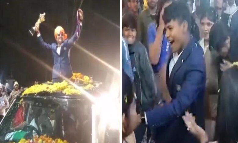 World Champion क्रांति का भव्य स्वागत! क्रिकेट के शुरुआती मैदान पर माथा टेका और माटी चूमा