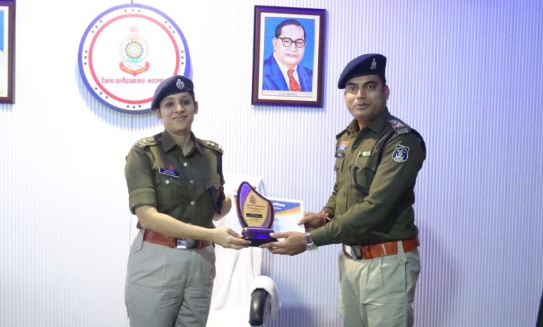 बलौदाबाजार। जिले में अपराध नियंत्रण और संगीन मामलों की त्वरित जांच में उत्कृष्ट प्रदर्शन पर थाना प्रभारी पलारी निरीक्षक हेमंत पटेल को COP OF THE MONTH के सम्मान से नवाजा गया। पुलिस अधीक्षक श्रीमती भावना गुप्ता ने उन्हें और उनकी टीम के कुल 7 अधिकारियों-कर्मचारियों को प्रशस्ति पत्र एवं प्रतीक चिन्ह प्रदान कर सम्मानित किया।