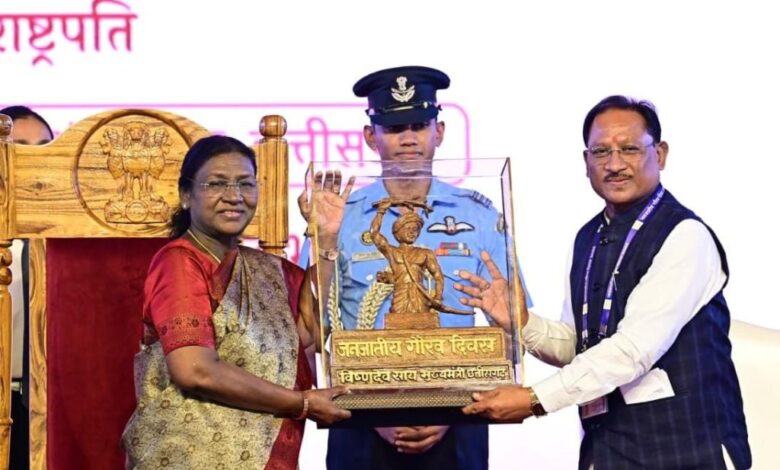 राष्ट्रपति ने कहा कि भारत लोकतंत्र की जननी है, और इसकी झलक बस्तर की ‘मुरिया दरबार’ जैसी जनजातीय परंपराओं में भी दिखाई देती है। उन्होंने कहा कि छत्तीसगढ़, झारखंड और ओडिशा की जनजातीय विरासत अत्यंत समृद्ध और आपस में जुड़ी हुई है। उन्होंने बताया कि उनके कार्यकाल के दौरान राष्ट्रपति भवन में ‘जनजातीय दर्पण’ संग्रहालय की स्थापना की गई है, तथा वहां आदिवासी कला और संस्कृति को विशेष स्थान दिया गया है। राष्ट्रपति ने अपने सम्बोधन में छत्तीसगढ़ में जनजातीय गौरव पखवाड़ा मनाने, जनजातीय स्वतंत्रता सेनानी संग्रहालय बनाने और शासकीय योजना के बेहतर क्रियान्वयन के लिए छत्तीसगढ़ सरकार और मुख्यमंत्री श्री विष्णुदेव साय की प्रशंसा की। उन्होंने बताया कि दिल्ली में आयोजित ‘आदि कर्मयोगी’ राष्ट्रीय सम्मेलन में छत्तीसगढ़ के आदिवासी विकास विभाग को उत्कृष्ट कार्य के लिए राष्ट्रीय पुरस्कार प्राप्त हुआ है। उन्होंने इस उपलब्धि के लिए मुख्यमंत्री श्री विष्णु देव साय तथा उनकी पूरी टीम को बधाई दी।