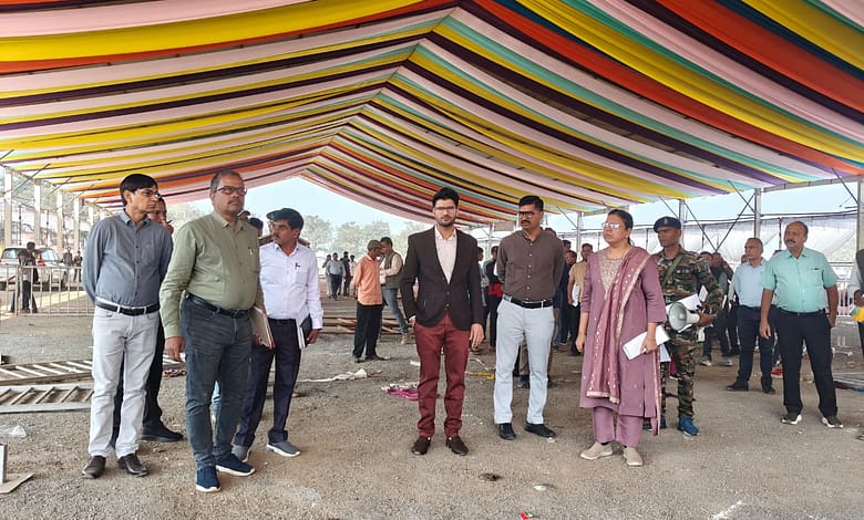 मुख्यमंत्री विष्णुदेव साय के आगमन पूर्व निरीक्षण करते जिला कलेक्टर व अधिकारीगण