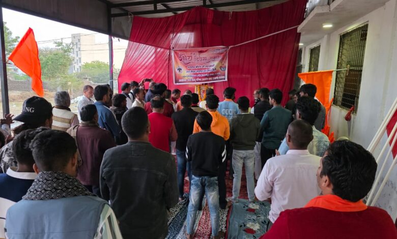 राजगढ़ नगर के खिलचीपुर नाका स्थित अंजनी लाल हनुमान मंदिर परिसर में शनिवार को विश्व हिंदू परिषद बजरंग दल के द्वारा राम दरबार की महा आरती के साथ शौर्य दिवस मनाया गया ।