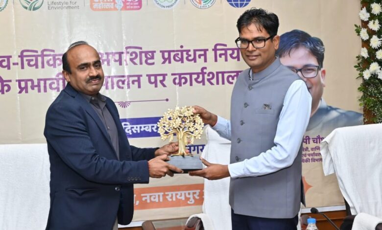 रायपुर, 10 दिसंबर 2025/ छत्तीसगढ़ पर्यावरण संरक्षण मण्डल द्वारा जैव चिकित्सा अपशिष्ट प्रबंधन नियम, 2016 (संशोधित 2021) के प्रभावी अनुपालन और जागरूकता बढ़ाने के उद्देश्य से आयोजित राज्य स्तरीय कार्यशाला का सफल आयोजन आज नवा रायपुर में हुआ। कार्यशाला के उद्घाटन सत्र में मुख्य अतिथि के रूप में उपस्थित वित्त, वाणिज्य कर, आवास एवं पर्यावरण तथा योजना एवं सांख्यिकी मंत्री श्री ओ.पी. चौधरी ने कहा कि जैव चिकित्सा अपशिष्ट का उचित प्रबंधन केवल स्वास्थ्य संस्थानों की नहीं बल्कि पूरे समाज की सामूहिक जिम्मेदारी है।
