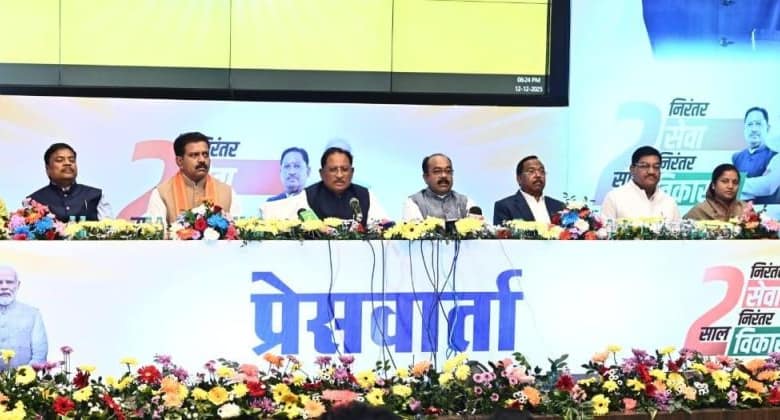 रायपुर 12 दिसंबर 2025/मुख्यमंत्री श्री विष्णु देव साय ने आज वर्तमान सरकार के 2 वर्ष पूर्ण होने पर न्यू सर्किट हाउस सिविल लाइन्स में आयोजित प्रेसवार्ता में राज्य सरकार के दो वर्ष के कार्यकाल का रिपोर्ट कार्ड प्रस्तुत करते हुए कहा कि माननीय प्रधानमंत्री श्री नरेन्द्र मोदी के नेतृत्व और उनकी गारंटियों पर विश्वास जताते हुए छत्तीसगढ़ की जनता ने जो सेवा का अवसर दिया, उसे सरकार ने पूरी निष्ठा और प्रतिबद्धता के साथ निभाया है। दो वर्षों में जनता का भरोसा और अधिक सशक्त हुआ है।