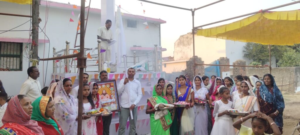 सरपंच विष्णु कोसले की उपस्थिति में सतनामी समाज के लोगों के द्वारा गांव में भव्य शोभायात्रा निकाली गई।
