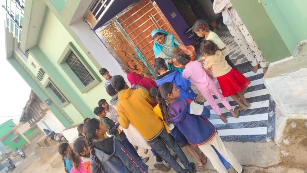 पर्व पर उल्लसित गांव के बच्चे