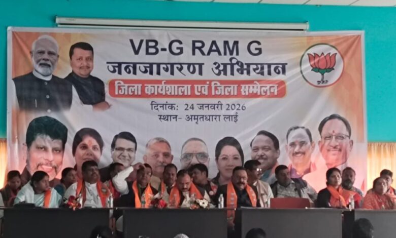 इसी क्रम में एमसीबी जिले के अमृतधारा लाई में वीबी–जी राम जी जनजागरण अभियान के तहत जिला कार्यशाला एवं जिला सम्मेलन का आयोजन किया गया। कार्यक्रम में प्रदेश के स्वास्थ्य मंत्री श्याम बिहारी जायसवाल शामिल हुए। इस दौरान पाठ्य पुस्तक निगम अध्यक्ष राजा पांडे जी, अनिल सिंह मेजर जी, जिला प्रभारी बाबूलाल अग्रवाल जी, भाजपा जिलाध्यक्ष श्रीमती चंपा देवी पावले, सहित जिला के भाजपा पदाधिकारी एवं कार्यकर्ता बड़ी संख्या में मौजूद रहे।