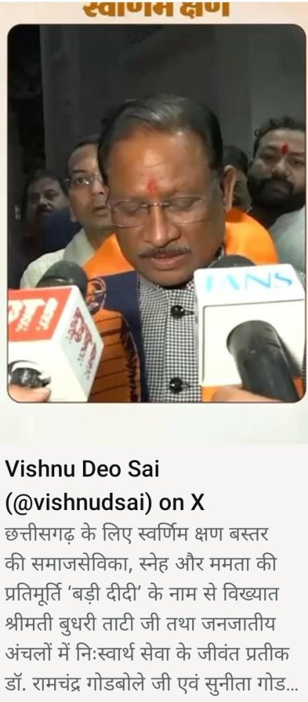 बस्तर की सेवा-संस्कृति को मिला राष्ट्रीय सम्मान : मुख्यमंत्री साय
