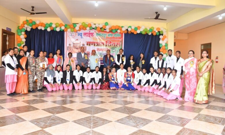 न्यू लाईफ हेल्थ एंड एजुकेशन सोसायटी द्वारा संचालित न्यू लाईफ इंस्टीट्यूट आफ नर्सिंग, बैकुण्ठपुर में दिनांक 26.01.2026 को गणतंत्र दिवस के अवसर पर सुबह 8ः00 बजे ध्वजारोहण कार्यक्रम का आयोजन किया गया। गणतंत्र दिवस के अवसर पर कार्यक्रम की शुरूवात मां सरस्वती, भारत माता एंव देश के राष्ट्रपिता महात्मा गांधी के छायाचित्र पर माल्यार्पण एंव दीप प्रज्जवलित से हुआ। संस्था में अध्ययनरत बी.एस.सी. नर्सिंग के विद्यार्थियों एवं स्टाॅफ की उपस्थिति में संस्था प्रमुख डाॅ प्रिंस जायसवाल एवं श्रीमति वंदना जायसवाल के द्वारा ध्वजारोहण कर समस्त स्टाॅफ एवं विद्यार्थियों के द्वारा राष्ट्रगान, झंडा गीत एंव छत्तीसगढ़ राज्यकीय गीत गाया गया। कार्यक्रम में उत्तम कश्यप ब्यूरो चीफ नवभारत, अशोक सिंह ब्यूरो चीफ नई दुनिया, अजय ठाकुर पत्रकार हरि भूमि, जुही ब्यूरो चीफ रिहंद टाइम्स अतिथिगण के रूप में सम्मिलित हुयेे। सम्पूर्ण कार्यक्रम में नर्सिंग विद्यार्थियों के द्वारा स्वागत नृत्य छठवां सेमेस्टर, देशभक्ति गीत प्रथम सेमेस्टर, देशभक्ति नृत्य प्रथम सेमेस्टर तथा हरीयाणवी नृत्य, छत्तीसगढ़ी करमा नृत्य सातवां सेमेस्टर के द्वारा प्रस्तुत किया गया। साथ ही तृतीय व चतुर्थ सेमेस्टर के छात्र- छात्राओं ने आपरेशन सिंदूर पर प्रभावशील नटकीय प्रस्तुती दी। कार्यक्रम के मध्य संस्था प्रमुख डाॅ. प्रिंस जायवाल, प्राचार्या डाॅ. अंजना सैम्यूल एवं अतिथियों द्वारा उद्बोधन में गणतंत्र दिवस की महत्ता के बारे में बताया तथा अच्छे नागरिक के उत्तरदायित्वओं को निभाने की प्रेरणा दी। पुरूस्कार वितरण कार्यक्रम अंतर्गत बी.एस.सी. नर्सिंग द्वितीय बैच छात्रा आरती पैकरा द्वारा छ0ग0 व्यापम स्टाॅफ नर्स भर्ती परीक्षा 2025 में सम्पूर्ण छत्तीसगढ़ में चतुर्थ स्थान एवं अनुसूचित जनजाति वर्ग में प्रथम स्थान प्राप्त करने पर छात्रा की उल्लेखनीय उपलब्धी को संस्था द्वारा सम्मानीत किया गया साथ ही दो दिवसीय एनवल फीएस्टा 2025 के विजेताओं की घोषणा व पुरूस्कार वितरण सम्मानीय अतिथियों द्वारा दिया गया जिसमें क्विज, लेमन स्पून रेस, एकल, गु्रप गीत और नृत्य शामिल रहा।