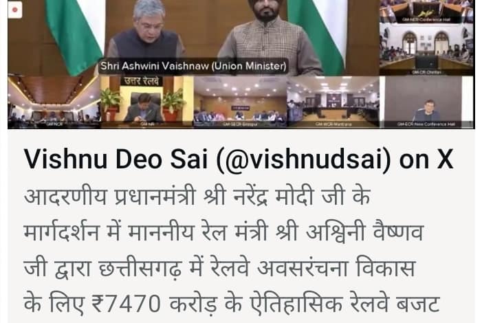 डबल इंजन सरकार का बड़ा तोहफा – छत्तीसगढ़ में रेलवे विकास के लिए ₹7,470 करोड़: मुख्यमंत्री विष्णुदेव साय ने प्रधानमंत्री नरेंद्र मोदी और रेल मंत्री अश्विनी वैष्णव के प्रति किया आभार प्रकट