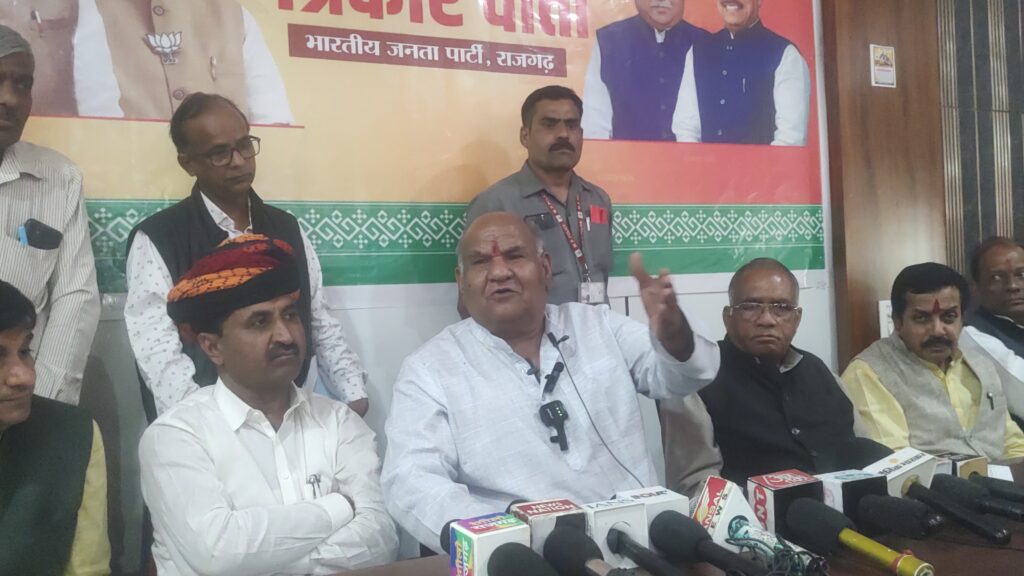 राजगढ़ स्थित भाजपा जिला कार्यालय में आयोजित प्रेस वार्ता को संबोधित करते हुए राजस्व मंत्री ने कहा—