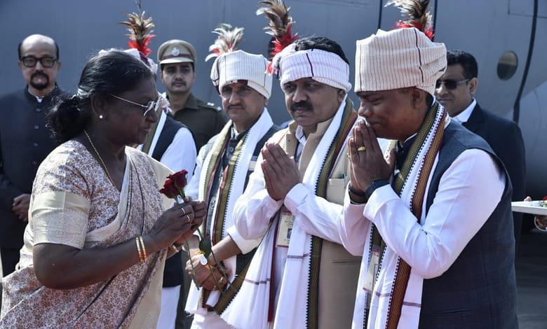 राष्ट्रपति द्रौपदी मुर्मू का जगदलपुर के मां दंतेश्वरी एयरपोर्ट में आत्मीय स्वागत