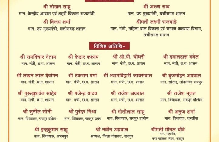 इस अवसर पर कार्यक्रम की अध्यक्षता विधानसभा अध्यक्ष डॉ. रमन सिंह करेंगे। कार्यक्रम में उप मुख्यमंत्री द्वय श्री अरुण साव, श्री विजय शर्मा, केंद्रीय आवास एवं शहरी विकास राज्य मंत्री श्री तोखन साहू, महिला एवं बाल विकास मंत्री श्रीमती लक्ष्मी राजवाड़े सहित मंत्रिमंडल के सदस्य, सांसद, विधायक एवं अन्य जनप्रतिनिधि विशेष रूप से उपस्थित रहेंगे।