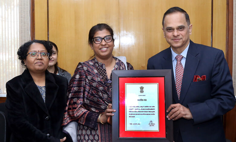जयपुर, 9 फरवरी । मुख्य सचिव श्री वी श्रीनिवास ने सोमवार को शासन सचिवालय स्थित चिंतन हॉल में गणतंत्र दिवस-2026 के राज्य स्तरीय समारोह में प्रदर्शित विभिन्न राजकीय विभागों की उत्कृष्ट झांकियों को पुरस्कृत किया। इस अवसर पर कृषि विभाग की झांकी “नमो ड्रोन दीदी” को पहला पुरस्कार मिला। इस झांकी में आधुनिक तकनीकों के माध्यम से खेती और कृषि क्षेत्र में महिला सशक्तिकरण का प्रभावी संदेश प्रस्तुत किया गया था। इसी प्रकार कला एवं संस्कृति विभाग की “राजस्थानी कला” थीम पर आधारित झांकी दूसरे स्थान पर रही। वहीं तीसरा पुरस्कार चिकित्सा एवं स्वास्थ्य विभाग की “माँ योजना” थीम पर आधारित झांकी को दिया गया। चयनित विभागों को मुख्य सचिव द्वारा प्रशस्ति पत्र एवं मोमेन्टो देकर सम्मानित किया गया।