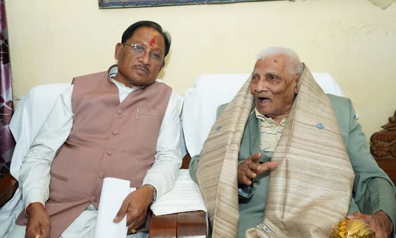 मुख्यमंत्री विष्णुदेव साय ने लोकतंत्र सेनानी से की मुलाकात