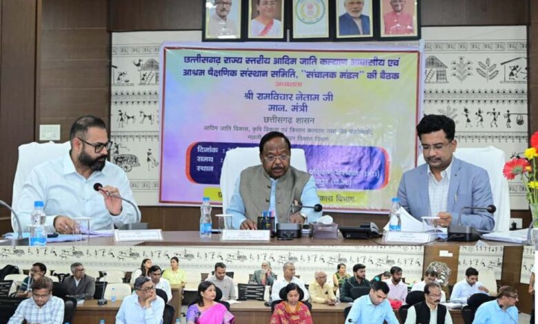 आदिम जाति विकास मंत्री राम विचार नेताम ने नवा रायपुर स्थित आदिवासी अनुसंधान एवं प्रशिक्षण संस्थान में एकलव्य आदर्श आवासीय विद्यालयों की प्रगति की समीक्षा की। उन्होंने कहा कि एकलव्य विद्यालय केंद्र सरकार के शत-प्रतिशत सहयोग से संचालित हैं, इसलिए विद्यार्थियों के बेहतर भविष्य के लिए गुणवत्तापूर्ण शैक्षणिक वातावरण सुनिश्चित करना सभी की जिम्मेदारी है। नए भवन प्रस्तावों में जिम और ऑडिटोरियम को अनिवार्य रूप से शामिल करने के निर्देश दिए गए।
