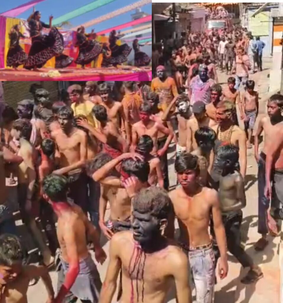 रंग पंचमी पर राजगढ़ में गैर यात्रा में झूमे युवा, राजमहल परिसर में महिलाओं ने होली के गानों पर किया डांस