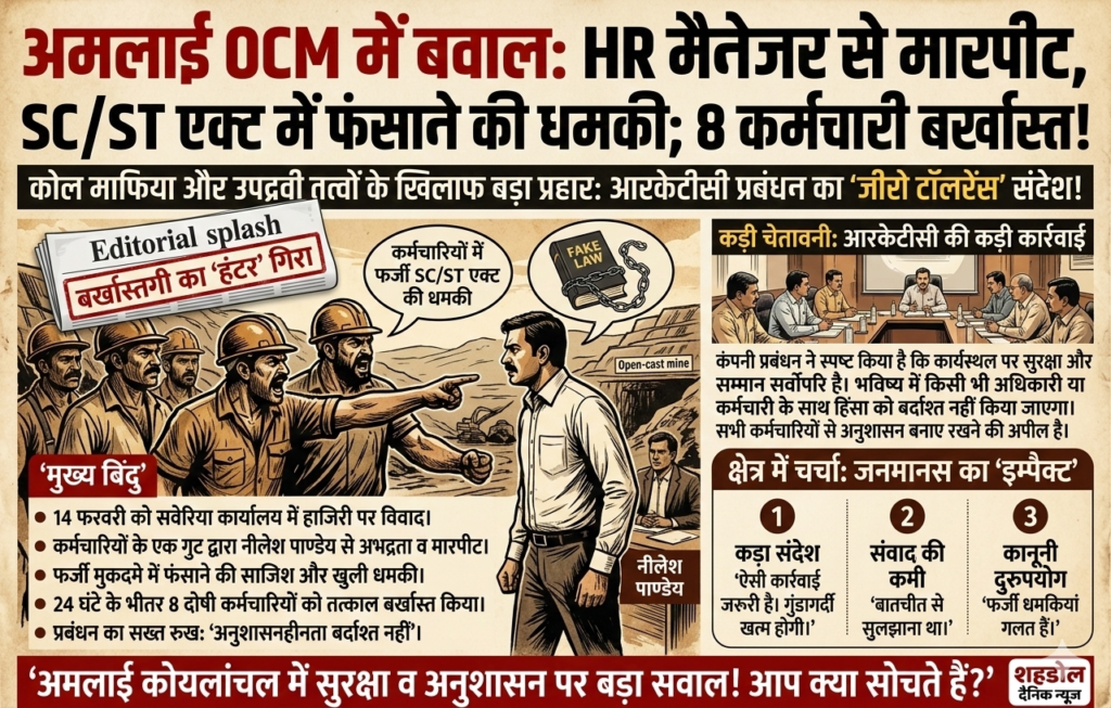 विशेष रिपोर्ट: कोयलांचल (शहडोल) असलम बाबा सोहागपुर कोयला क्षेत्र के अमलाई ओपन कास्ट माइन (OCM) में अनुशासन और सुरक्षा के दावों की सरेआम धज्जियां उड़ा दी गईं। आरकेटीसी (RKTC) कंपनी, जो इस क्षेत्र में ओवर बर्डन (OB) हटाने का महत्वपूर्ण जिम्मा संभाल रही है, वहां के कार्यस्थल पर गुंडागर्दी का ऐसा तांडव मचा कि अधिकारी अपनी जान बचाने के लिए भागते नजर आए। कंपनी के एचआर (HR) मैनेजर नीलेश पाण्डेय पर हुए जानलेवा हमले और उसके बाद दी गई SC/ST एक्ट की फर्जी धमकी ने पूरे कोयलांचल में हड़कंप मचा दिया है।