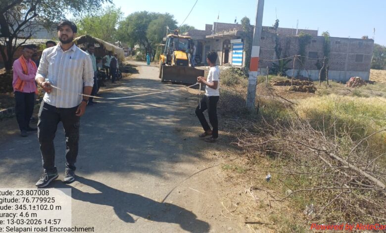 तहसील खुजनेर से प्राप्त जानकारी के अनुसार ग्रामीण सड़क विकास प्राधिकरण के अंतर्गत करनवास से सीलापानी तथा देहरीबामन से सनखेड़ी मार्ग का निर्माण कार्य चल रहा है। इस दौरान कुछ ग्रामीणों द्वारा सड़क के शोल्डर पर बागड़ और फेंसिंग लगाकर अतिक्रमण कर लिया गया था, जिससे निर्माण कार्य प्रभावित हो रहा था।