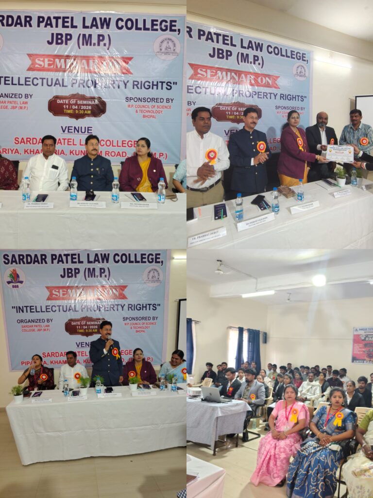 जबलपुर | ज्ञान आधारित वैश्विक अर्थव्यवस्था में अब विचार ही सबसे बड़ी संपत्ति हैं। जब तक हम अपने नवाचारों और मौलिक विचारों को कानूनी सुरक्षा प्रदान नहीं करेंगे, तब तक समाज वास्तविक प्रगति नहीं कर सकता। यह उद्गार जिला न्यायाधीश माननीय हिदायत उल्ला खान ने सरदार पटेल विधि महाविद्यालय में आयोजित “बौद्धिक संपदा अधिकार” (Intellectual Property Rights) विषयक एक दिवसीय संगोष्ठी में मुख्य अतिथि की आसंदी से व्यक्त किए।