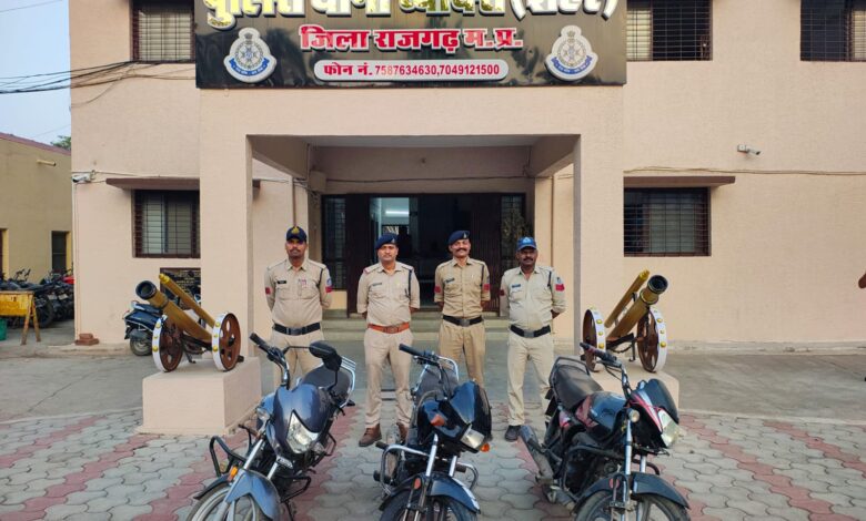 पुलिस अधीक्षक जिला राजगढ़ अमित तोलानी (भा.पु.से.), अतिरिक्त पुलिस अधीक्षक के एल बंजारे एवं एसडीओपी ब्यावरा प्रकाश शर्मा के कुशल निर्देशन एवं मार्गदर्शन में थाना ब्यावरा सिटी पुलिस एवं सायबर सेल की संयुक्त टीम द्वारा प्रभावी कार्यवाही करते हुए मोटर साइकिल चोरी करने वाले गिरोह का पर्दाफाश किया गया।