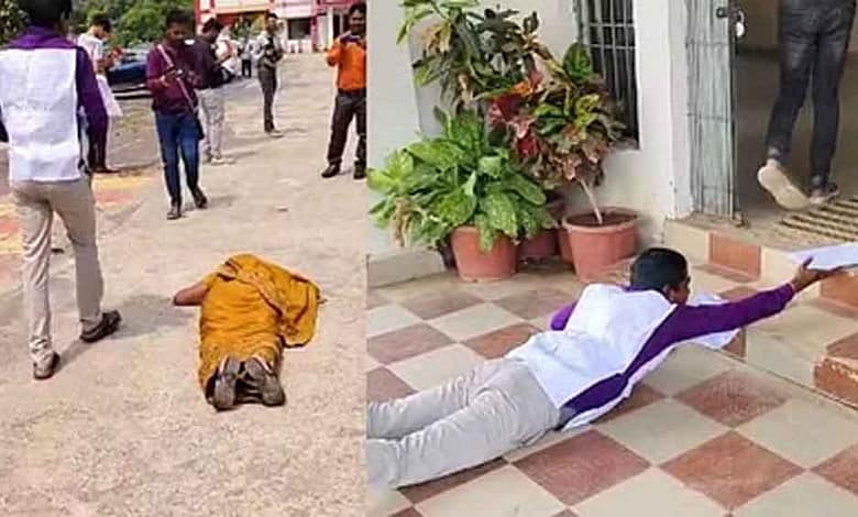 सारंगढ़-बिलाईगढ़ जिले के ग्राम टुड्री निवासी घनश्याम श्रीवास अपनी पत्नी के साथ 35 किलोमीटर दूर से सारंगढ़ जिला मुख्यालय पहुंचा। वह और उसकी पत्नी कलेक्टर कार्यालय के गेट से लेकर अधिकारी के चेंबर तक दंडवत करते हुए न्याय की गुहार लगाई। यह नजारा देखकर मौके पर मौजूद लोगों ने आश्चर्य जाहिर किया।