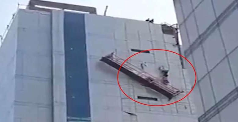 घटना का एक वीडियो सोशल मीडिया पर तेजी से वायरल हो रहा है, जिसमें दो मजदूर एक ट्राली पर बैठकर बिल्डिंग के शीशे साफ करते दिख रहे हैं. अचानक ट्राली की एक तरफ की रस्सी टूट जाती है, जिससे ट्राली टेढ़ी हो जाती है और मजदूर हवा में लटक जाते हैं. मजदूरों की रस्सी ट्राली से बंधी थी, जिससे वे नीचे गिरने से बच गए. जैसे ही ट्राली टेढ़ी हुई, मजदूरों ने मदद के लिए चिल्लाना शुरू कर दिया. इमारत की छत पर मौजूद अन्य मजदूरों ने धीरे-धीरे रस्सियों को खींचकर दोनों फंसे हुए मजदूरों को सुरक्षित ऊपर खींच लिया. मजदूरों ने कोई भी सेफ्टी उपकरण नहीं पहन रखे थे. इस घटना ने एक बार फिर निर्माण स्थलों पर मजदूरों की सुरक्षा के मुद्दे को उजागर किया है.
