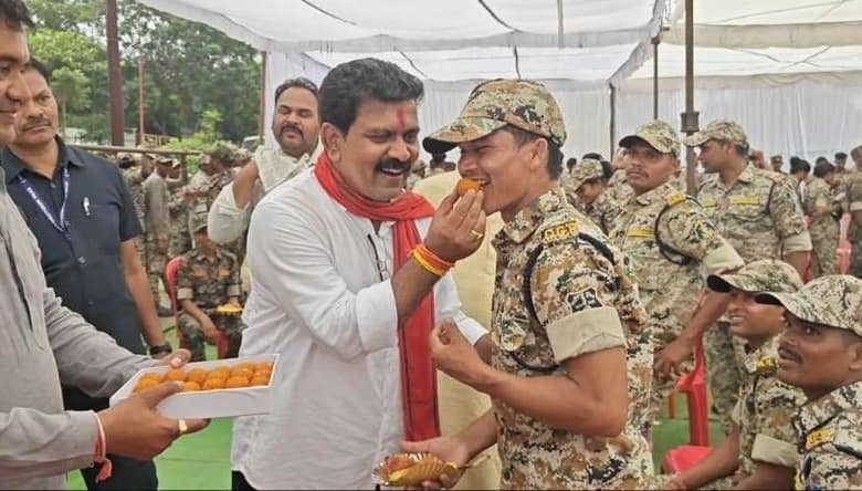 मुख्यमंत्री की भेजी मिठाई लेकर जवानों के बीच पहुंचे मंत्रीगण
