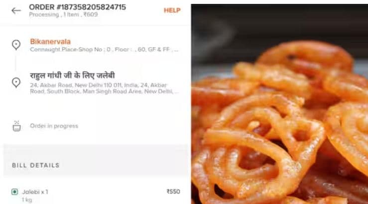 बीजेपी ने कनॉट प्लेस की जलेबी कैश ऑन डिलीवरी के साथ राहुल गांधी को भेजी