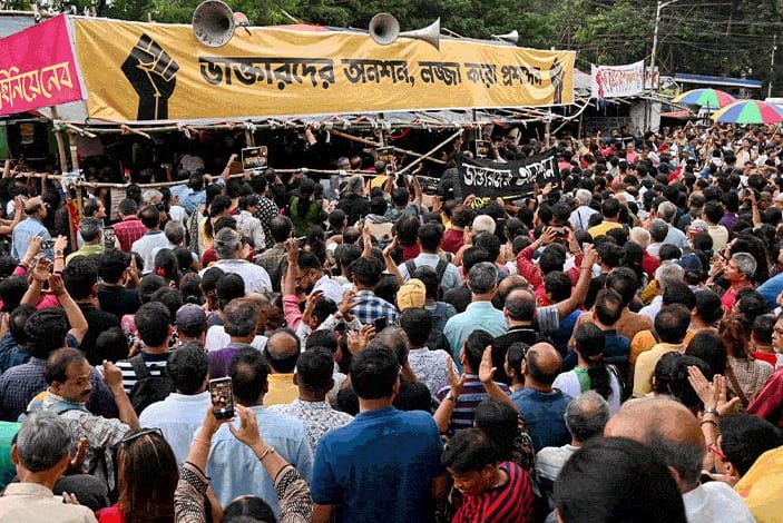 कोलाकाता । कोलकाता में ट्रेनी डॉक्टर के रेप-मर्डर के विरोध में 6 अक्टूबर से अनशन पर बैठे ट्रेनी डॉक्टरों में से 1 और डॉक्टर की हालात गंभीर हो गई है। हड़ताल पर बैठे डॉक्टरों ने बताया कि उनके साथी डॉ. अनुस्तुप मुखर्जी को शनिवार रात को गंभीर हालत में अस्पताल पहुंचाया गया है। प्रोटेस्ट कर रहे एक डॉक्टर ने बताया कि मुखर्जी के स्टूल से खून आ रहा था। उन्हें पेट में तेज दर्द की भी शिकायत थी। 3 डॉक्टरों की हालत बिगड़ने के लिए राज्य सरकार जिम्मेदार है, क्योंकि सरकार हमारी सभी मांगें नहीं मान रही है। इससे पहले शनिवार शाम को नॉर्थ बंगाल मेडिकल कॉलेज में भूख हड़ताल पर बैठे डॉक्टर आलोक वर्मा की हालत बिगड़ी थी, जिसके बाद उन्हें अस्पताल में भर्ती कराया गया था। वहीं 10 अक्टूबर को ट्रेनी डॉक्टर अनिकेत महतो को आरजी कर अस्पताल के सीसीयू में भर्ती कराया गया था। दरअसल, आरजी कर अस्पताल में 8 अगस्त की रात ट्रेनी डॉक्टर का रेप और मर्डर किया गया था। 9 अगस्त को विक्टिम की बॉडी मेडिकल कॉलेज में मिली थी। इसके अगले दिन से जूनियर डॉक्टरों ने 42 दिन तक विरोध प्रदर्शन किया था। राज्य सरकार ने डॉक्टरों की मांगें नहीं मानी। जिसके चलते डॉक्टरों ने 5 अक्टूबर की शाम से भूख हड़ताल शुरू की। इसमें कुल 10 डॉक्टर शामिल हैं।