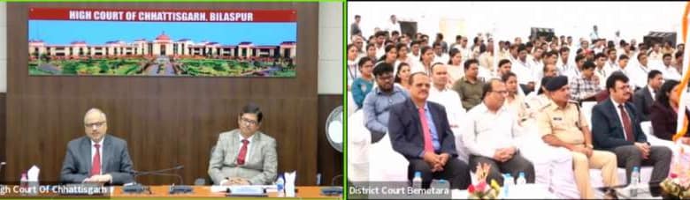 रायपुर : मुख्य न्यायाधिपति न्यायमूर्ति रमेश सिन्हा ने वर्चुअल माध्यम से बेमेतरा में कुटुम्ब न्यायालय भवन का भूमिपूजन व शिलान्यास किया। मुख्य न्यायाधिपति सिन्हा ने कहा कि हमारी प्राथमिकता छत्तीसगढ़ के प्रत्येक जिले में गुणवत्तायुक्त तथा सर्वसुविधायुक्त न्यायालय व आवासीय भवन उपलब्ध कराना है। इसी कड़ी में आज कुटुम्ब न्यायालय भवन बेमेतरा का भूमिपूजन व शिलान्यास किया जा रहा है।